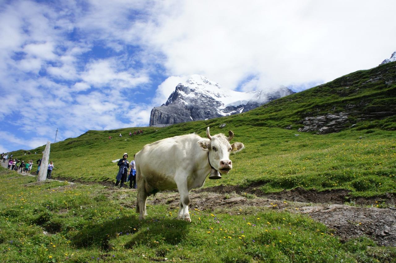 グリンデルワルトの谷とヴェッターホルンの雄大な景色は、典型的なアルプスの風景。