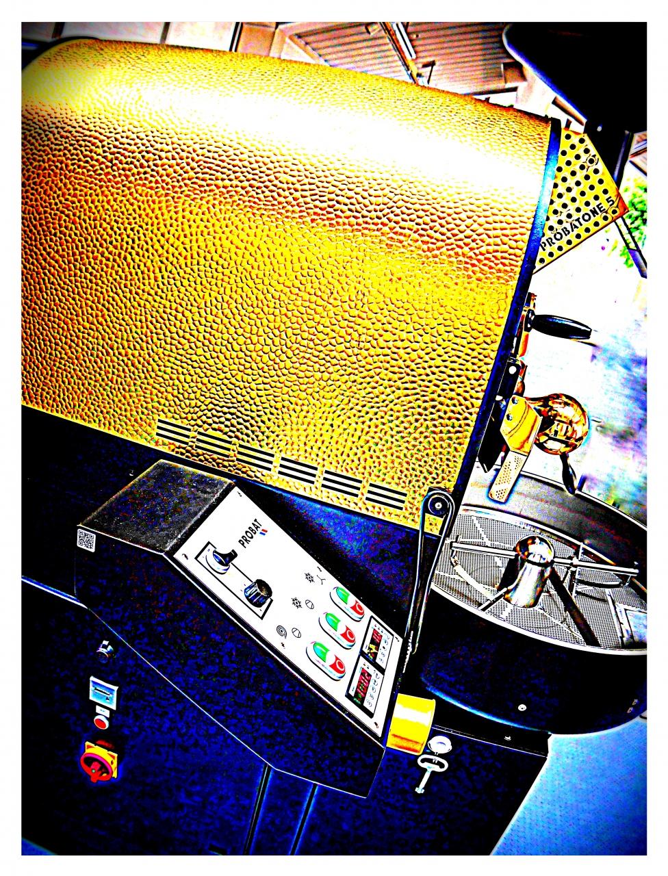 D51のような構えのプロバット焙煎機。如何にもドイツ製らしい重々しい佇まい。 -
