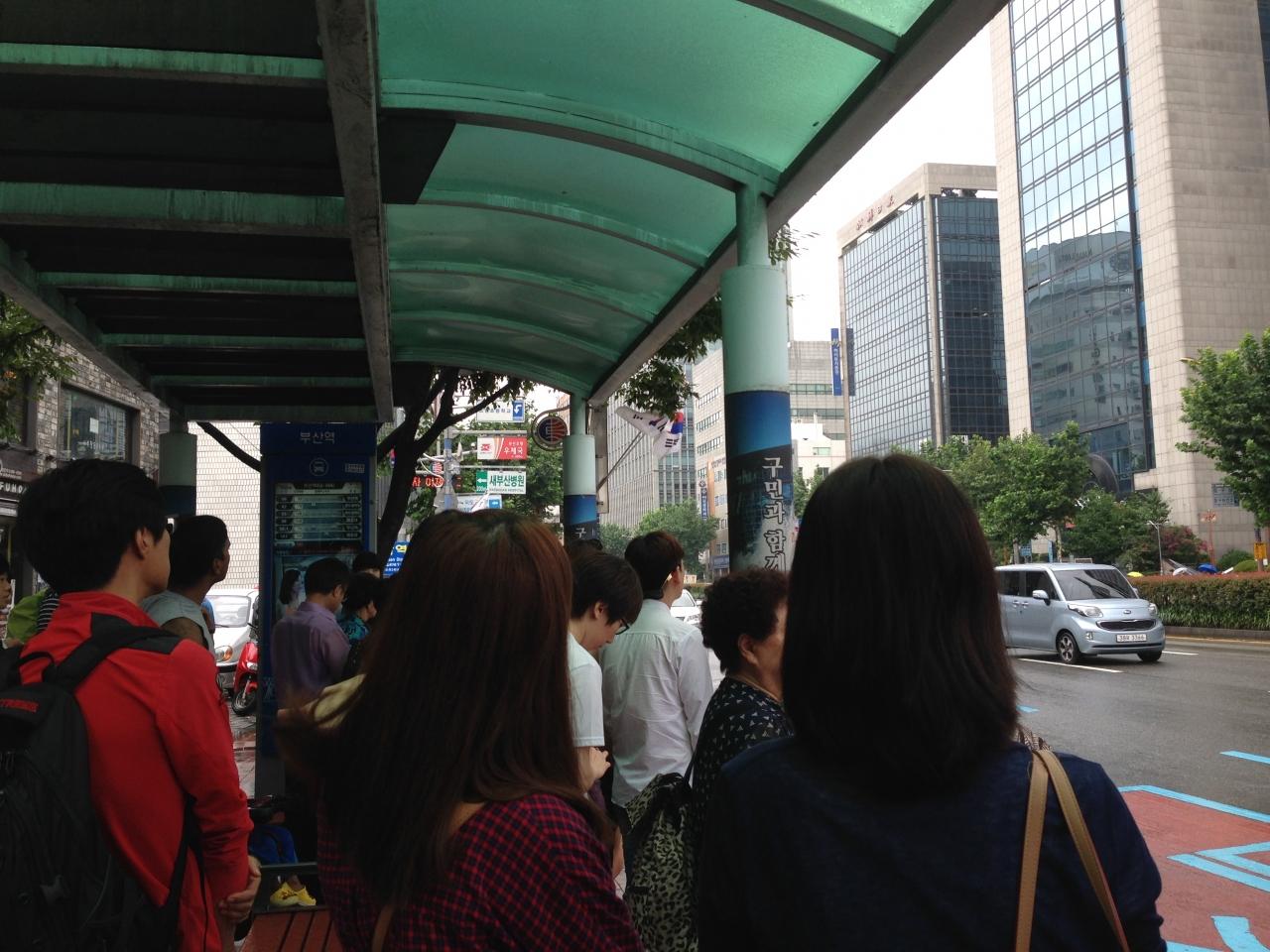 こちらのバス停もなかなか人が多かったですが座ることができました