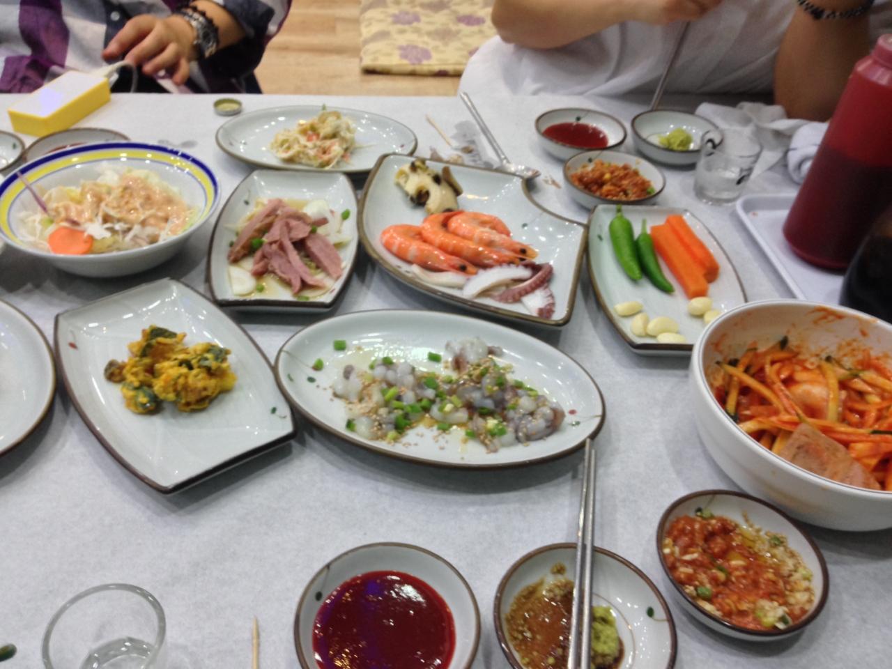 真ん中の皿がプサン名物生きたタコの踊り食いですw