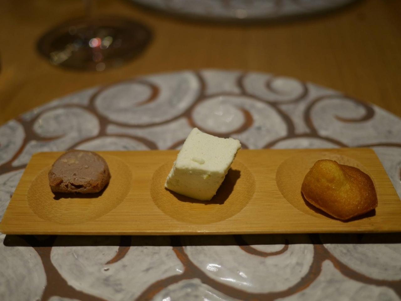 前菜その1。右の皿に乗っているのは鰹節を削ったもの。和風アレンジ、悪くないですよ。