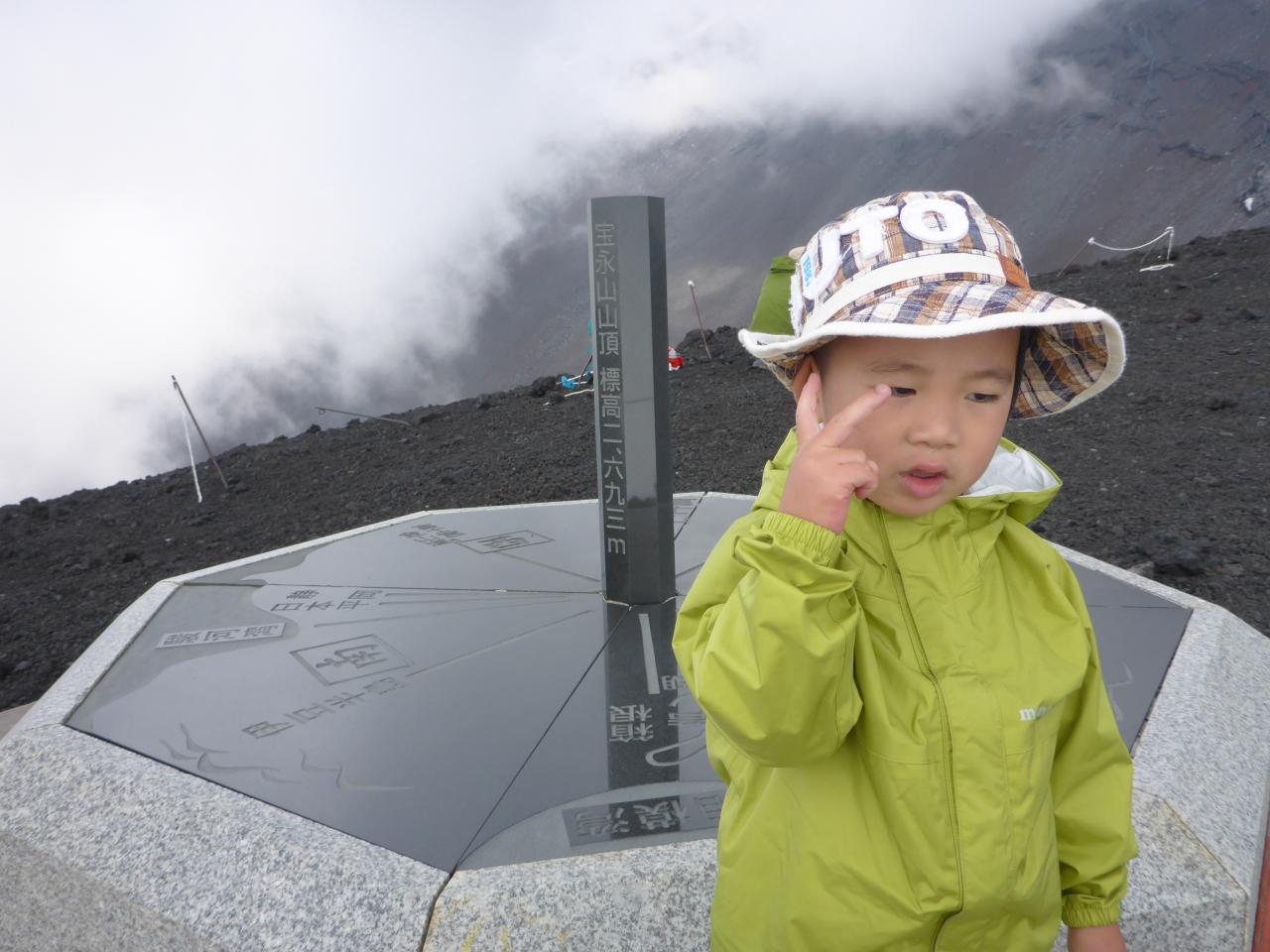俺は去年富士登山成功していたが、友人2人は他の山々を登っているとは言え、日本一の富士山は今回が初!俺の家族と一緒にハイキングがてら楽しんできました。最初はみんな元気だったが、第1火口からの上りがきつく弱音が出てきた。そこは、3歩上ると2歩下がるという感じの「ガレ場」だった。約1時間我慢の末頂上にたどり着いた。富士山山麓の小高い丘に感じられるが、標高2700m侮れない。写真は宝永山山頂から富士山山頂を望む!その脇に女房と息子です。