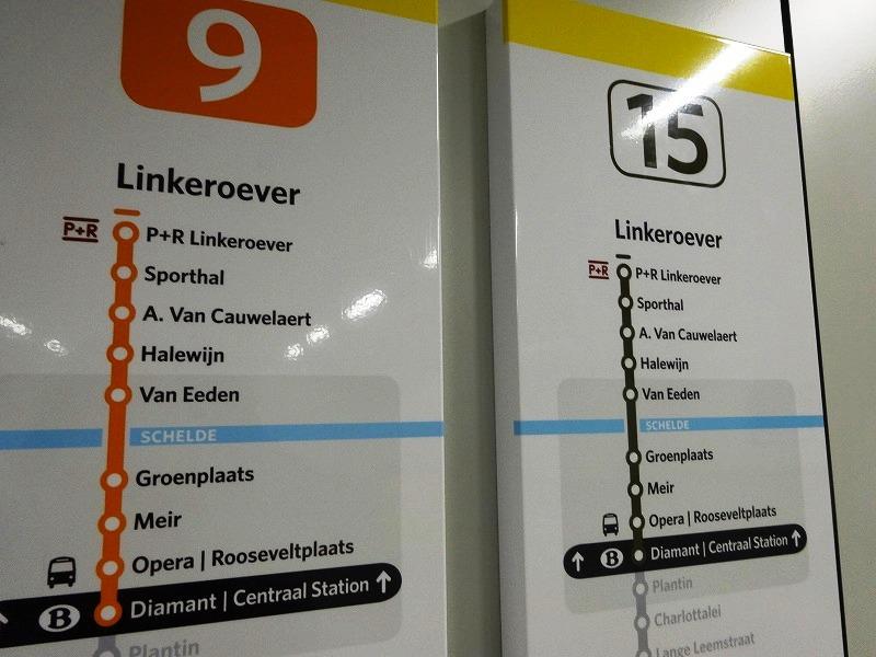 中心部の駅「Groenplaats」へは9号線か15号線のLinkeroever行きです。