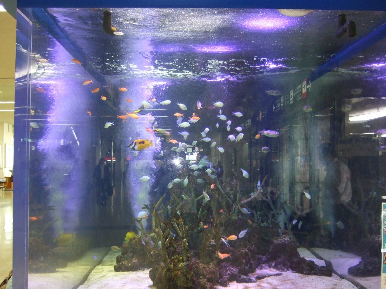 那覇空港には熱帯魚水槽がどんと鎮座。