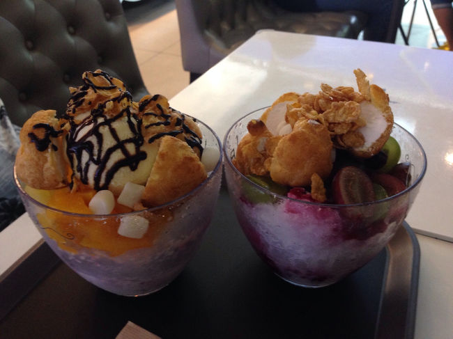 大邱でサムゲタンを食べた後、韓国の夏の風物詩、ミルクカキ氷をいただきました。一つ 二人分あります。淡雪の様で美味しかったです。トッピングもいーっばい。