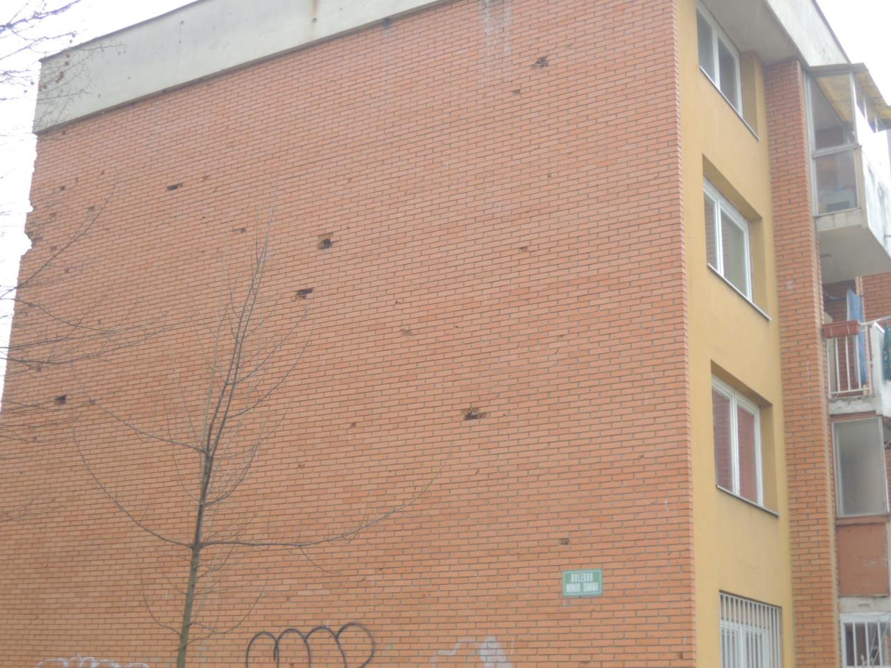 サラエヴォの街中には、銃痕が残ったままの建物の壁。