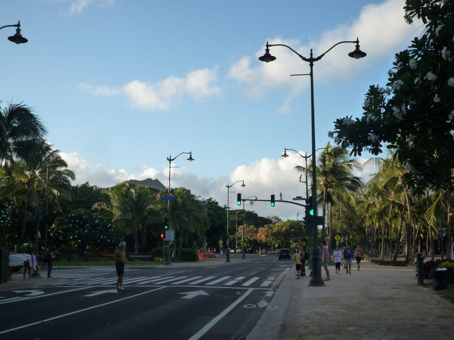 お部屋を6時20分〜30分頃に出て徒歩でシェラトンワイキキからハウツリーラナイに向かいます。一度行ってみたかったので〜。