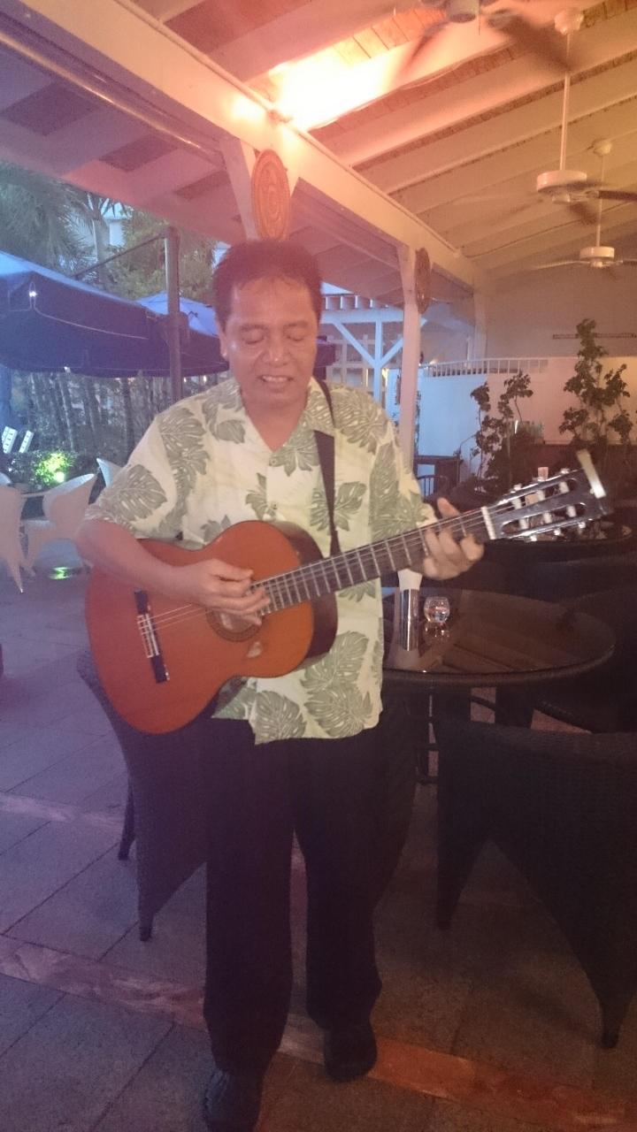 生演奏のオヤジ!各テーブルを歌いながら回ります。