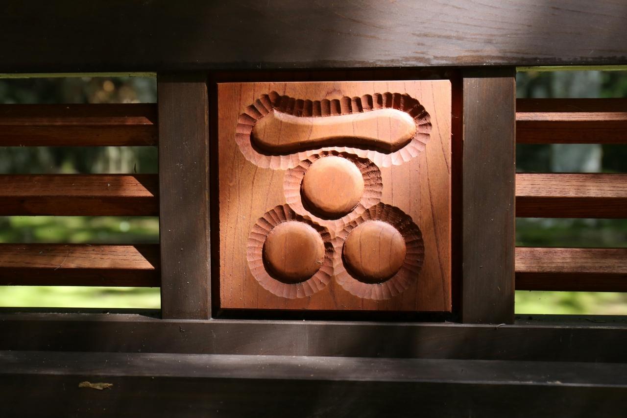 一文字の下に円形でそれぞれ描かれた三星は、オリオン座の真中に直列する三つの星を表現しています。 -
