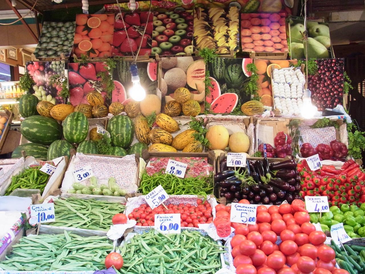 商店街の様子。カフェやら八百屋、魚屋、惣菜屋がたくさん並んでいる。