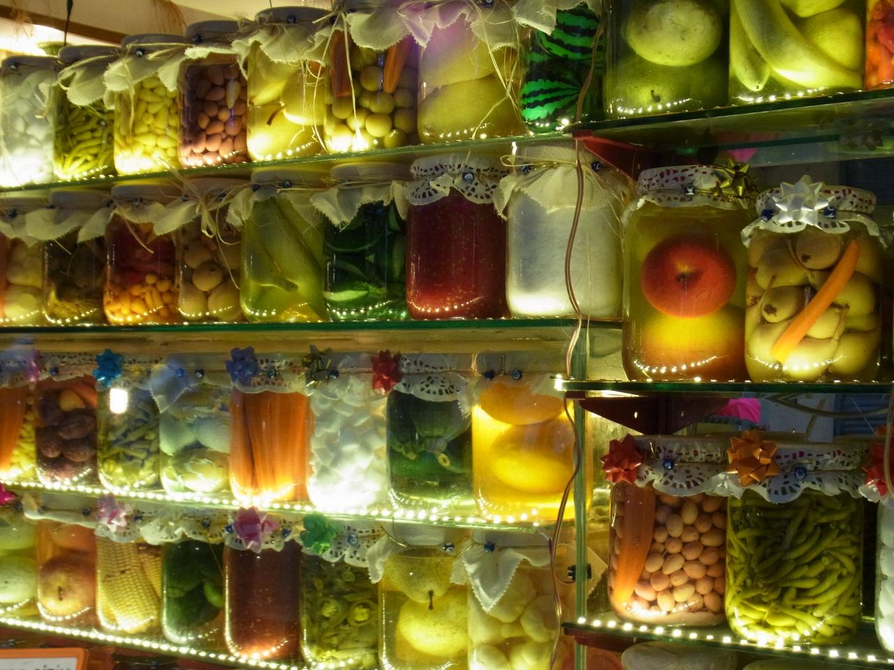 ピクルス屋さんのディスプレイです。だいたい分かるのですが、たまに何か分からないものもあって、松かさ(松ぼっくり)みたいなもののピクルスがありました。あとは果物(たぶんリンゴ)みたいなものとか・・・不思議なお店です。