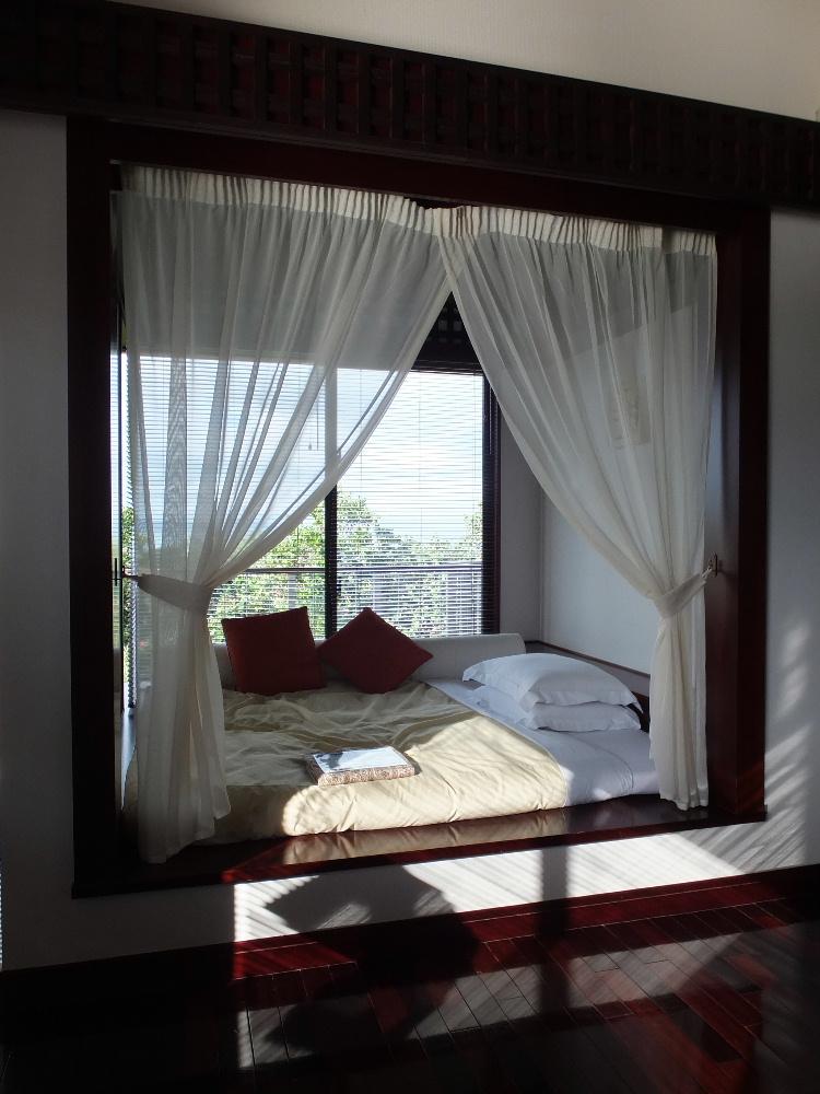 チェアーの後ろの窓を開けると、ベッドルームが登場!