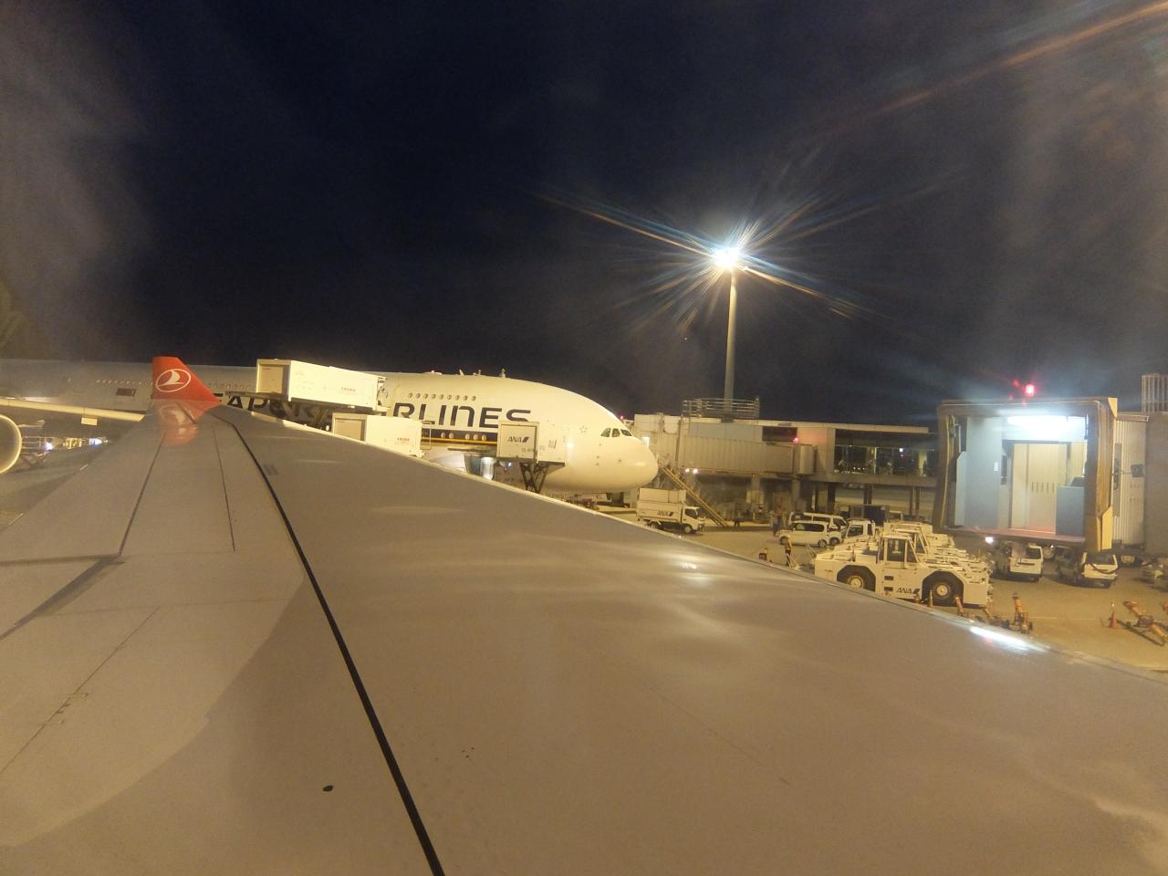 トルコ航空が遅れ、中華系の航空機も遅れ、混雑。