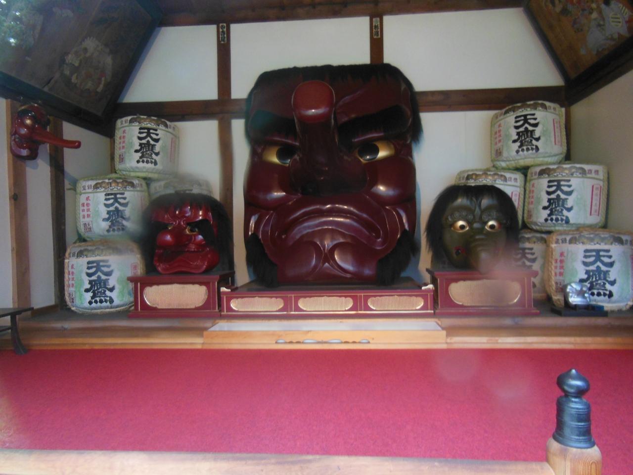 最初に行ったのは 法輪寺というお寺です。ここは神仏混淆のお寺です。日本一大きい天狗のお面がありました。