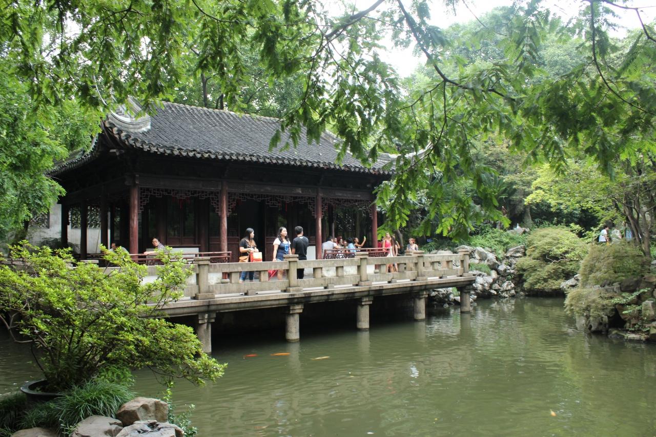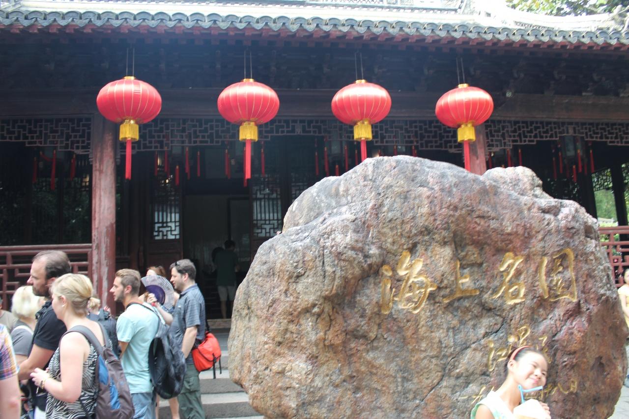上海最古の木造建築の三穂堂(さんすいどう)と、江沢民の筆による「海上名園」の岩です。