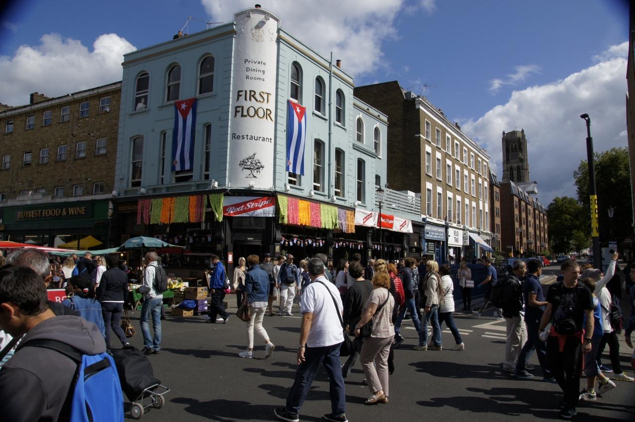 訪れたときは、イギリスはバンクホリデーの連休にあたりここでは「ノッティングヒルカーニバル」が開催されていました。それはそれはすごい人出で、息子の目的はポールスミスの旗艦店でした。ところがお店は改装中でお休み、カーニバルのことはよくわからなかったのですが、お土産ものやアンティクの露天がたくさんでていました。