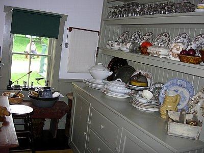 白い箱にはじゃがいもが入っていました。窓際に横長の椅子が見えますか? 昔の家は夏でもオーブンに火を入れていました。料理やアイロンで使いますから。それで特にコルセットをしめた女性はしばしば倒れたそうで、横になるための椅子なんだそうです。 -