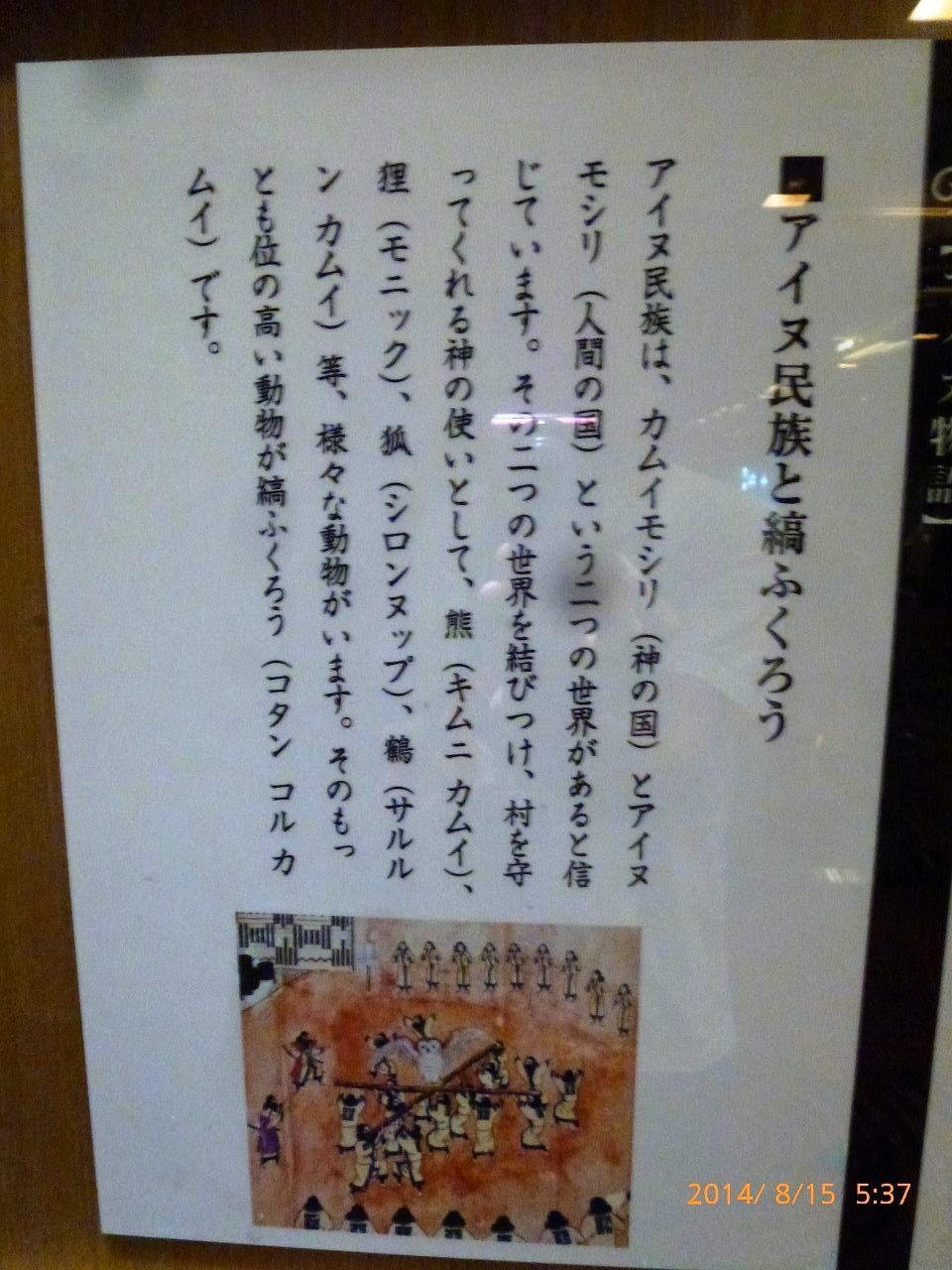 エレベータードアにアイヌ民族の絵が…