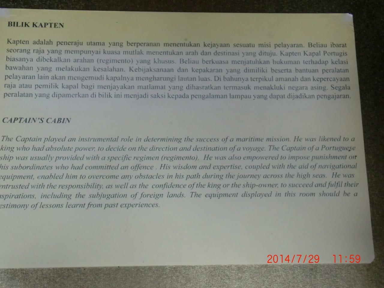船長室の説明ですが、読むと