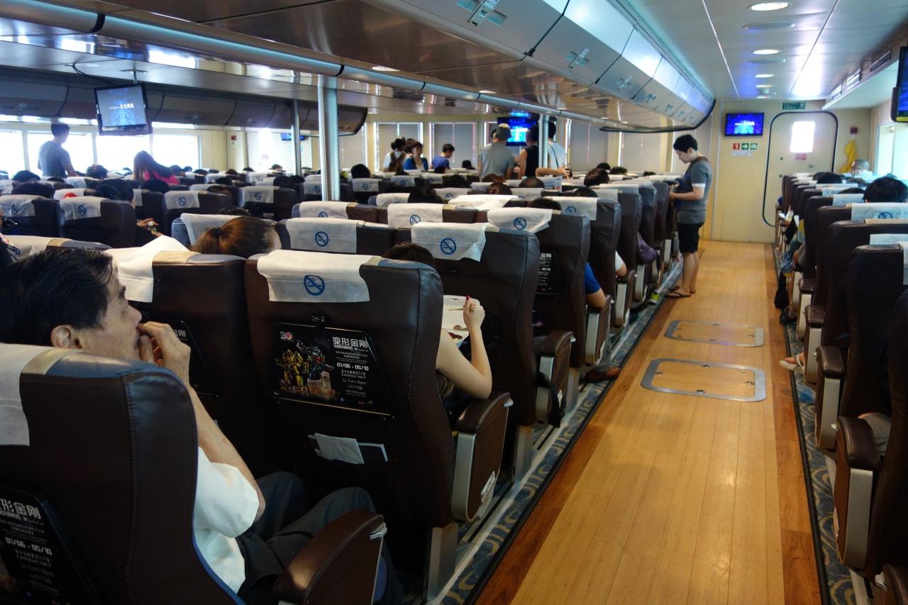 船内は混雑していた。タイパなんか何も無いのに何でこんなに混んでいるのか?きっと外港に行きたい人が間違えて切符を買ったからだと思う(笑)。