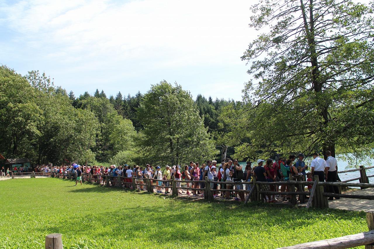 プリトヴィツェ滝のところで結構急な階段を下り、湖沿いの道に出る。
