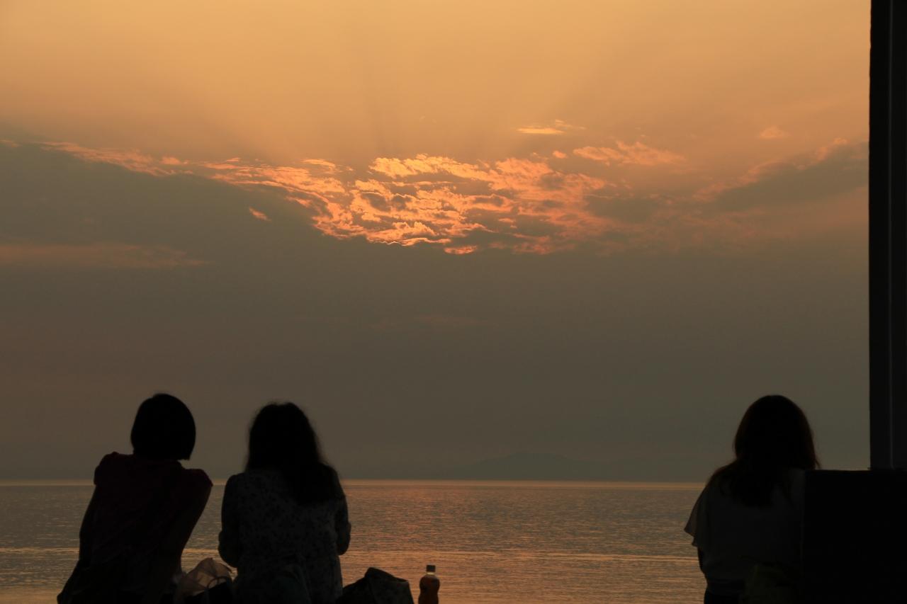 この日は、海面近くまで雲が垂れこめていたので、期待していた夕日とはいかなかったものの、それでもこの光景です。