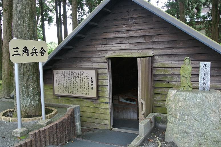 三角兵舎。出撃前の隊員が過ごした生活隊舎です。
