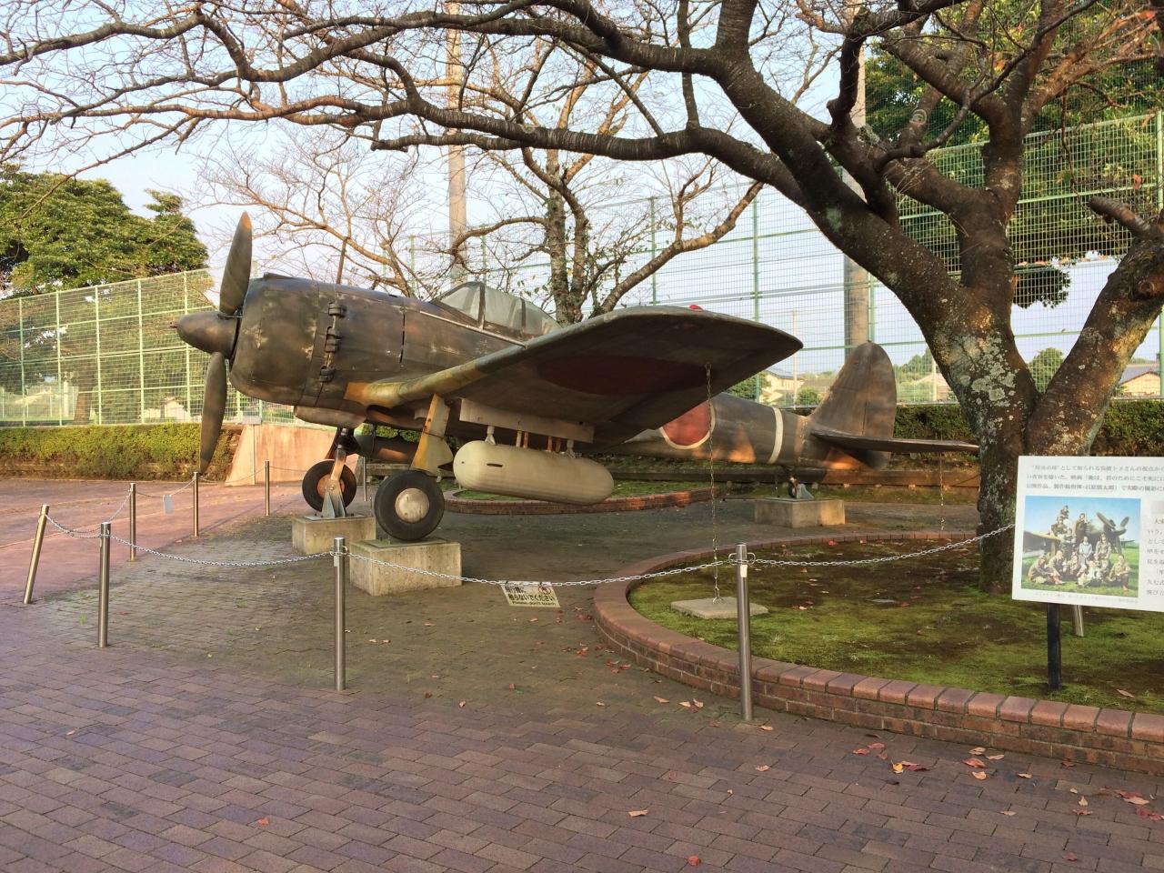 閉館時間になったので外へと出ます。この知覧特攻平和会館は知覧平和公園の中にあり、その他企画展をしているミュージアム知覧、特攻隊員勇士の像”とこしえに”、母の像”やすらかに”、一式戦闘機”隼”(映画撮影時の復元)、三角兵舎(復元)、特攻平和観音、太刀洗陸軍飛行学校知覧教育隊記念碑、知覧基地特攻隊の歌々碑、知覧町護国神社、鳥濱とめ顕賞碑、平和の鐘、慟哭・誓いの碑、アリランの碑、生き残り隊員の歌碑、”俺は君のためにこそ死にいく”撮影記念碑、航空自衛隊T-3初等練習機等当時を偲ぶものが敷地内にあります。残念ながら知覧特攻平和会館の閉館に合わせて周りのお店なども閉まるため、見る場所は多々あれど次の目的地へと向かいます。