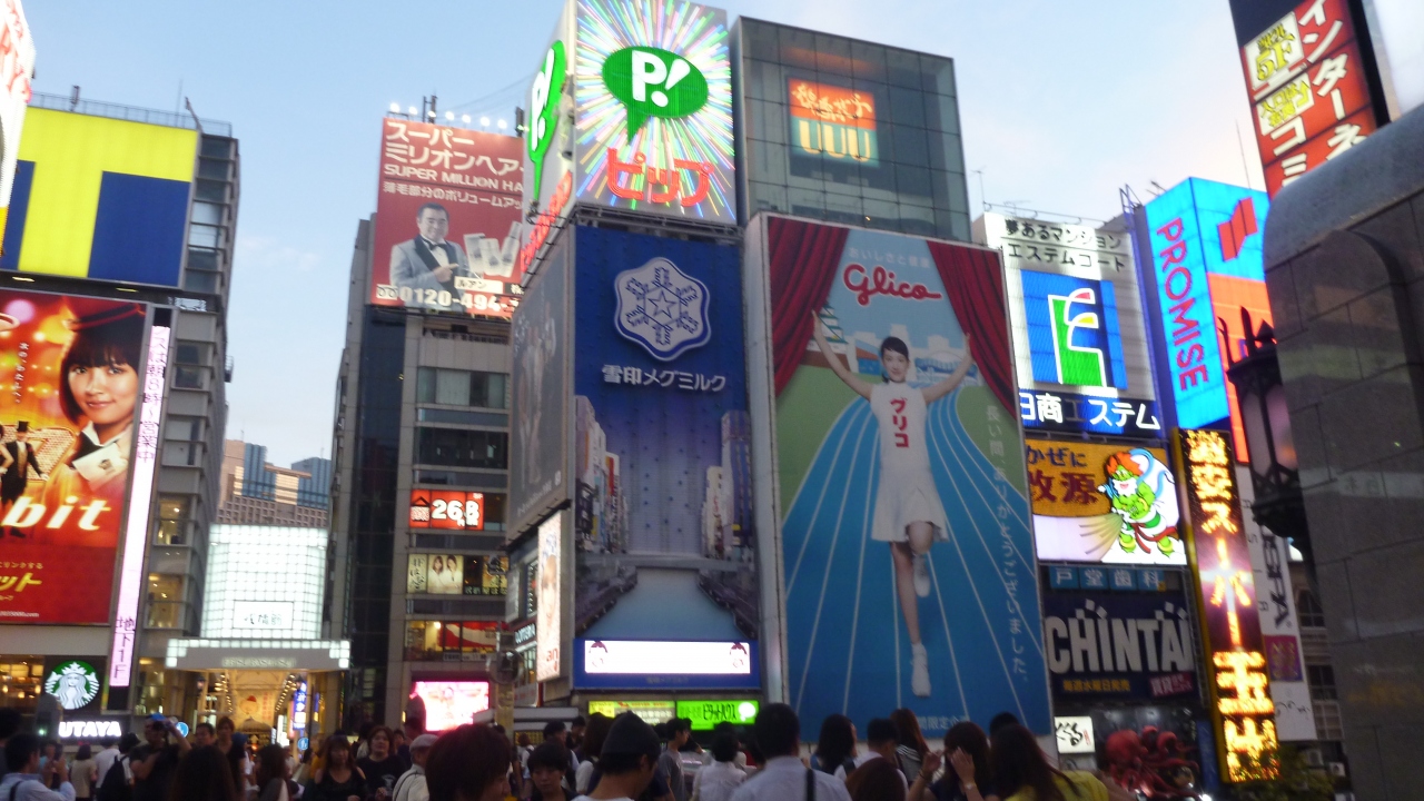 通天閣、大阪城、道頓堀でグリコのネオンサイン見学