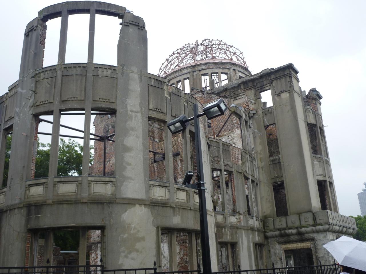雨にもかかわらず、たくさんの観光客がいました。私は初めて原爆ドームを見ました。