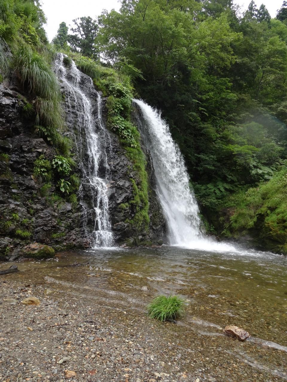 孫六温泉に向かう道は上から水が流れ小川のようです
