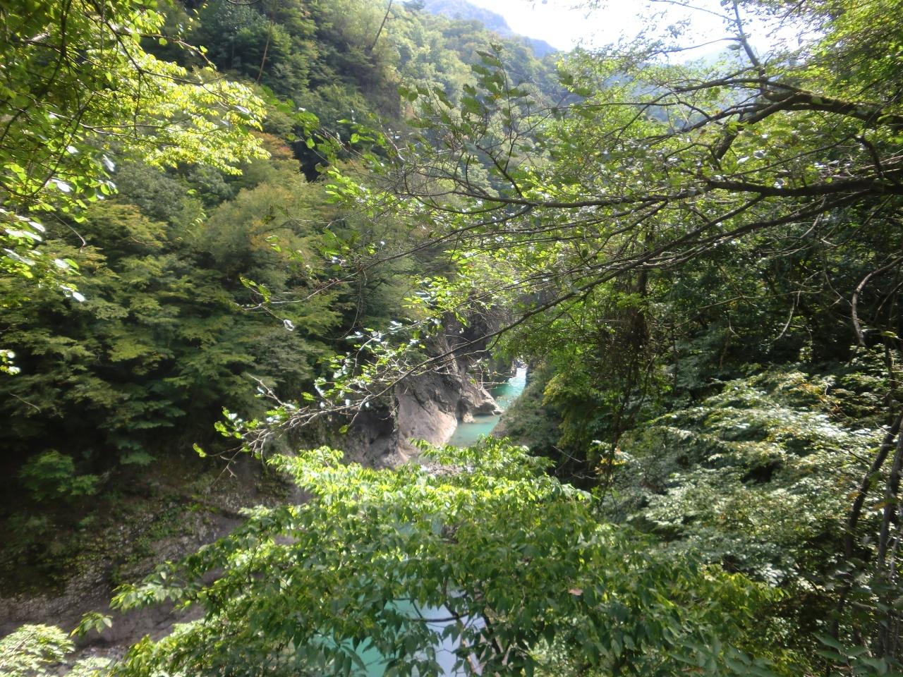 ちょっと行っただけで、こんな渓谷の色!エメラルドグリーンです!