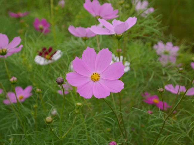 ほとんどが赤い花ですが、ごくたまに白い花が咲いています。