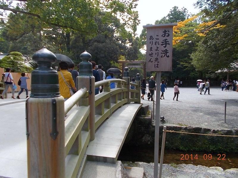 2014.9.22:伊勢内宮(皇大神宮)、火除け橋を渡って、手水舎にて清めて。