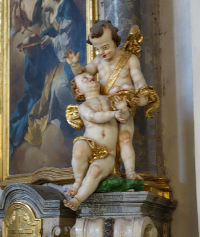 聖堂内には天使像がたくさんあるんですが、中でも変なのがこれ。歯を抜いてる?