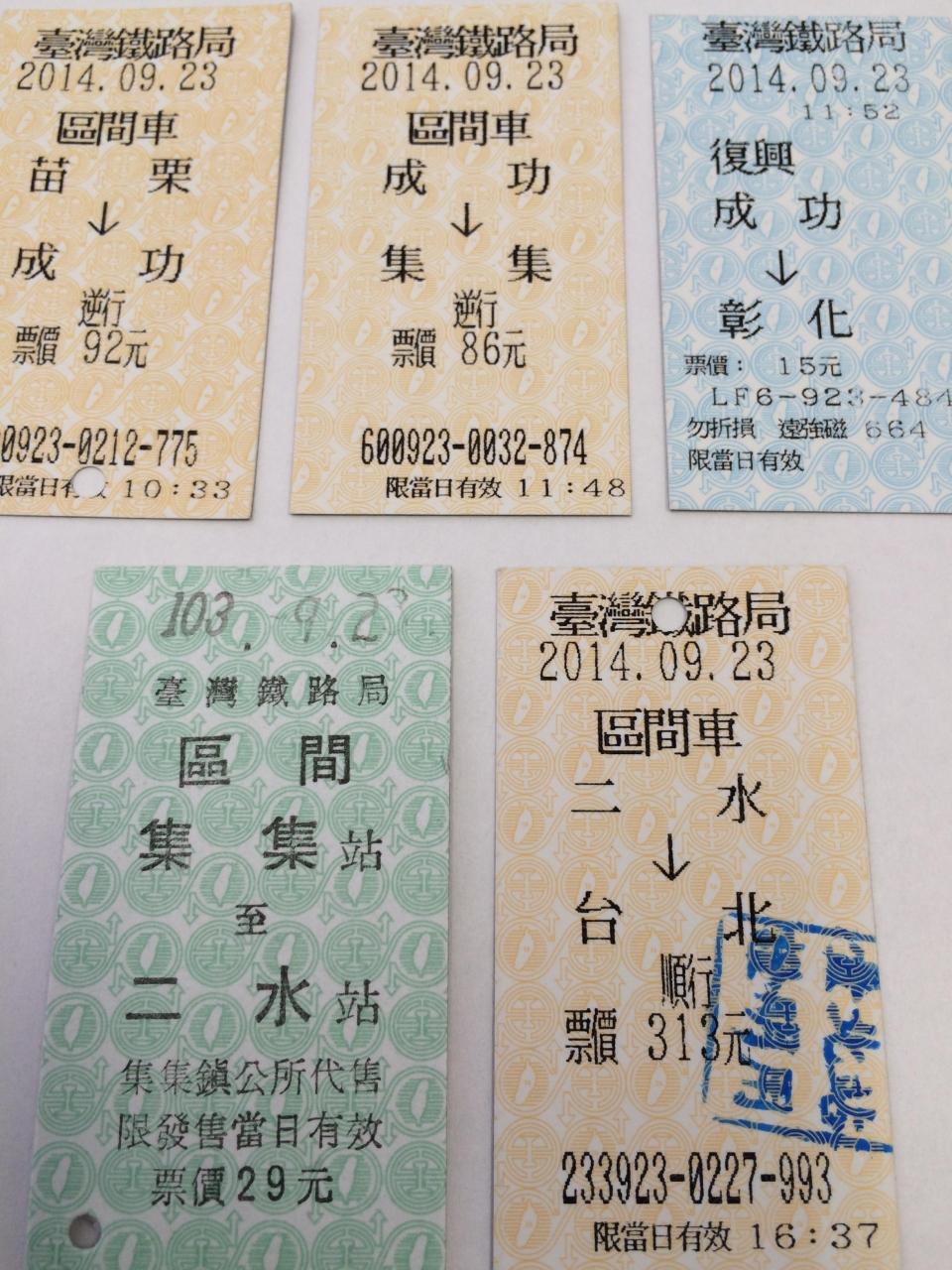 今日の旅で手元に残った台鐡の切符です。