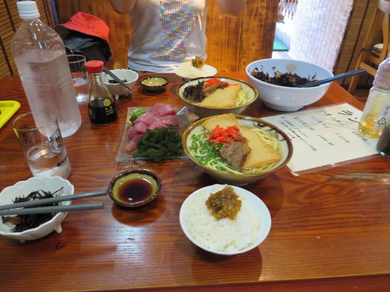 カウンターをふと見ると…。ん!?オーダーしたのは、八重山そば。マグロもあるよ、1本釣りの。とのことでマグロのお刺身とご飯。