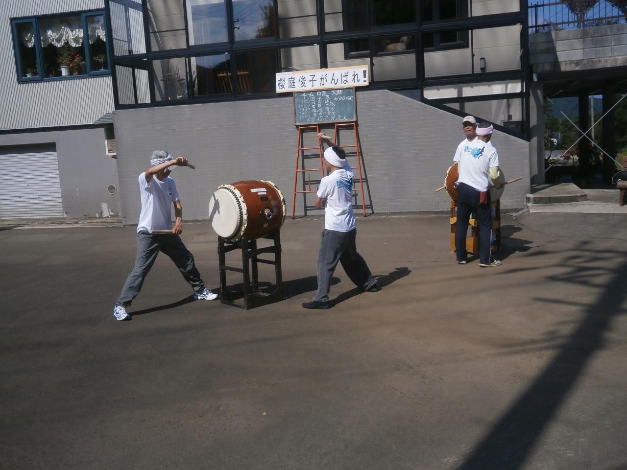 阿仁合の集落に入ると、太鼓で盛り上げてくれました。