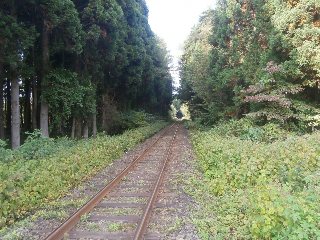 雰囲気のある線路を横切ります。