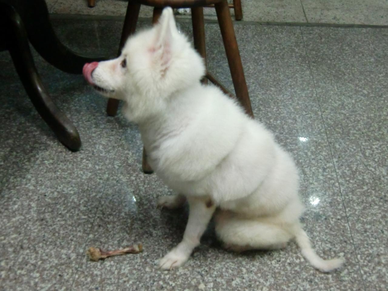 待ち時間に犬と遊ぶ