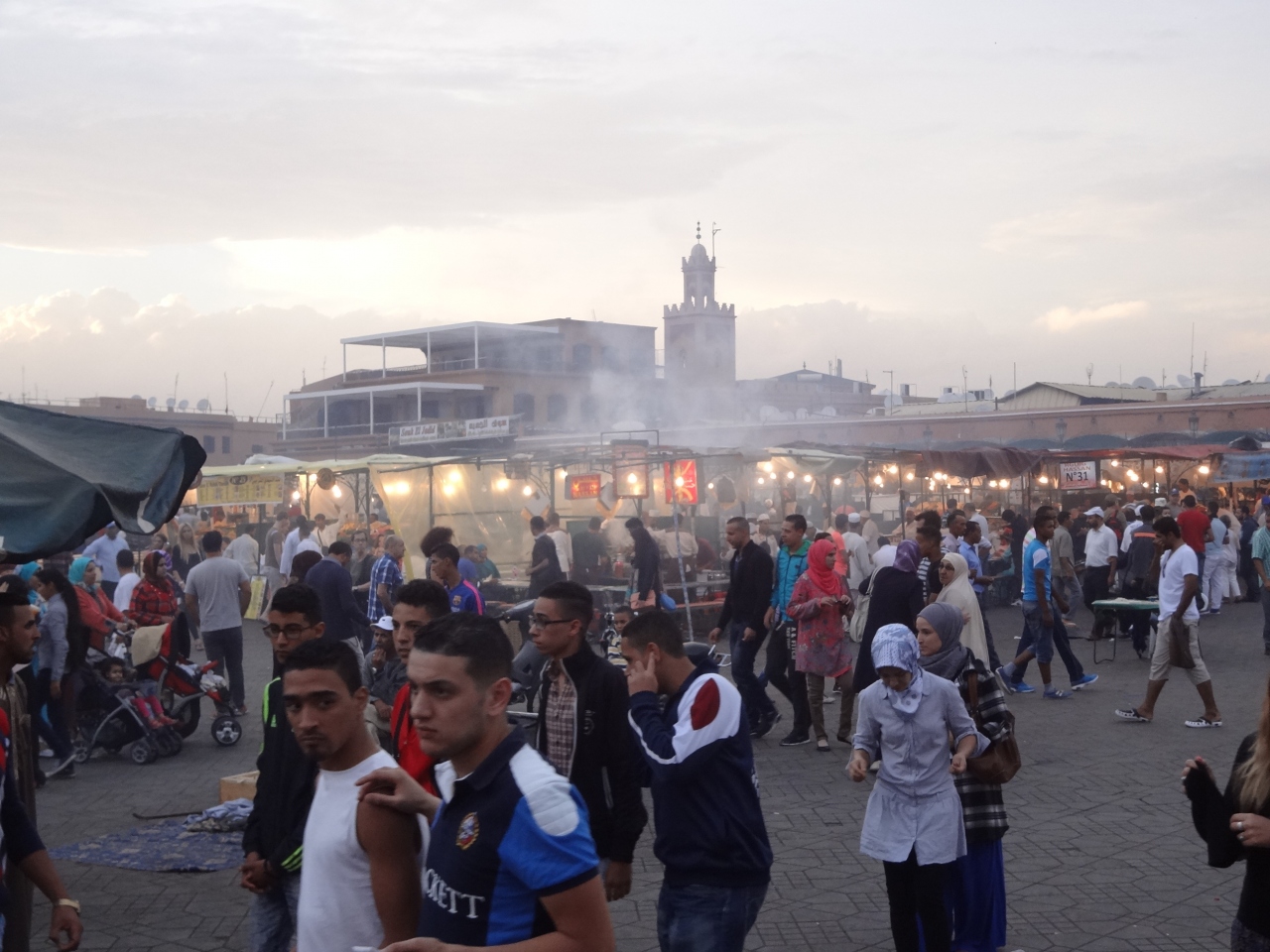 マラケシュと言えばフナ広場。夜は屋台がたくさん出ますが広間はオレンジジュースの屋台とお土産屋さん。オレンジジュースは4DHでしぼりたてが飲めます。