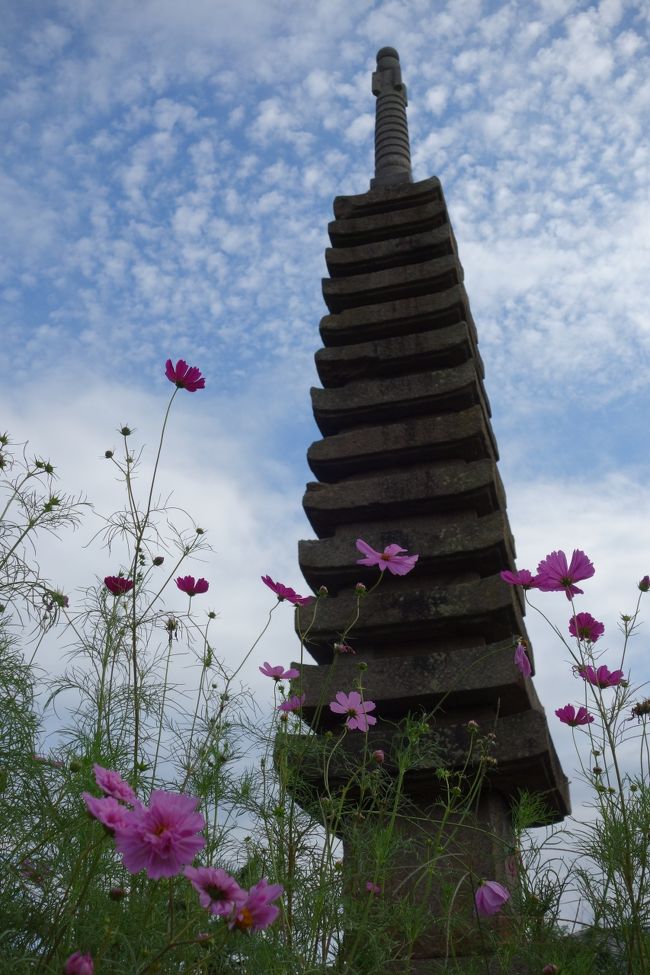 コスモスと石宝塔、うっとりですよね♪