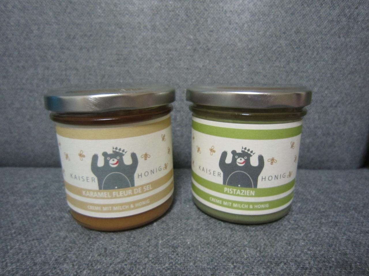 • EAT BERLINの蜂蜜入りのペースト。<br />ピスタチオと塩キャラメル。<br />ラベルのかわいさで購入。