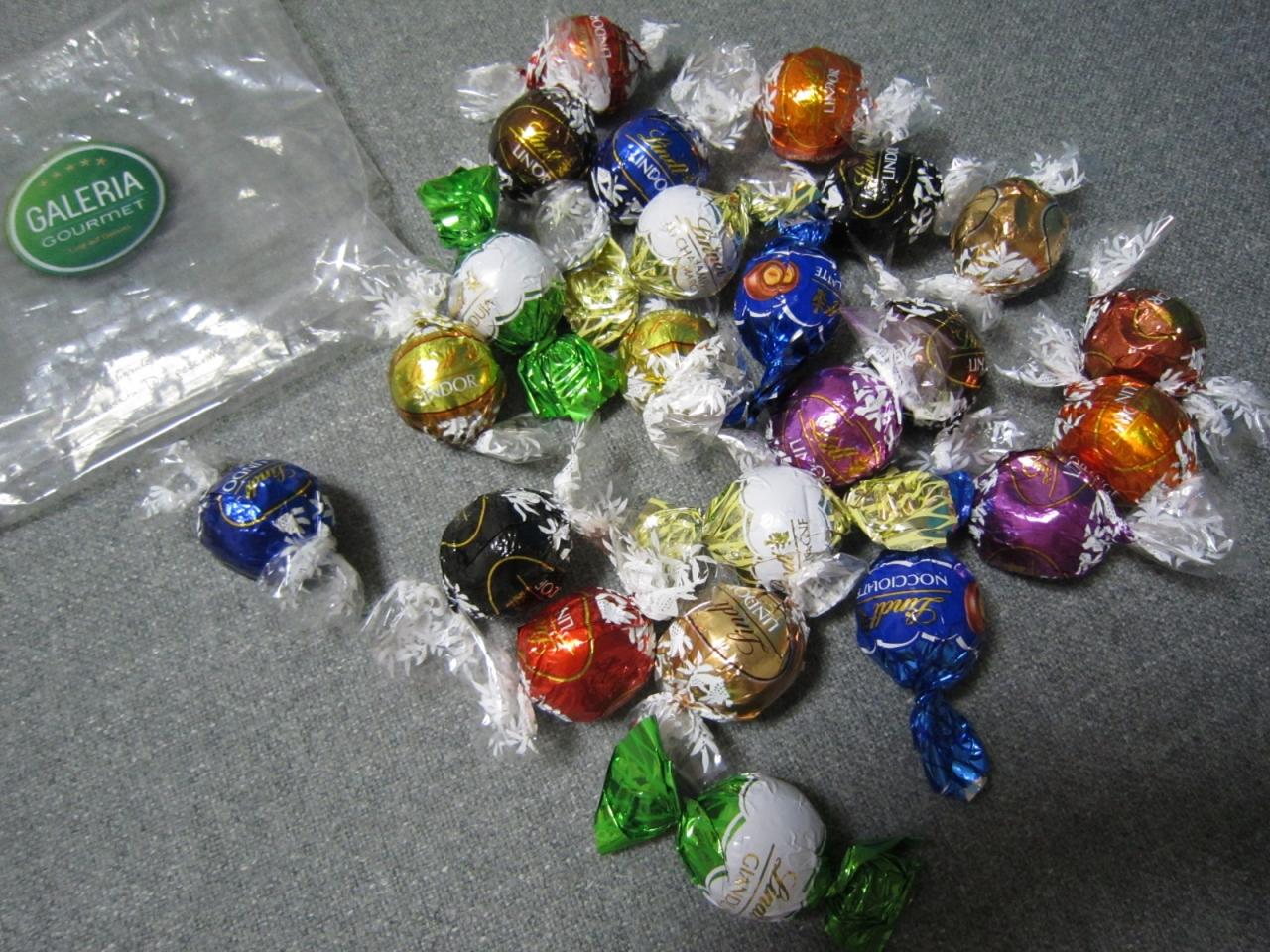 ガレリア・カウフホーフで買ったリンツのリンドールとナッツ&リキュール入りチョコ。