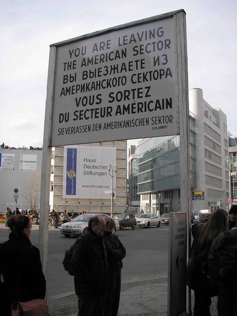 チェックポイントチャーリーという、冷戦時代のアメリカによる検問所(を観光地化した場所)。