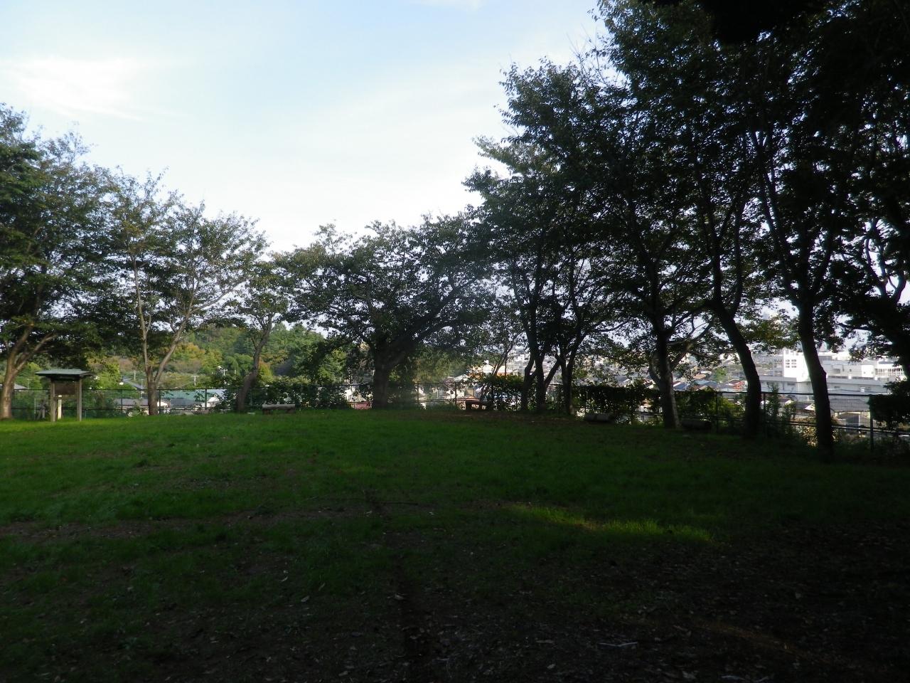 弘法寺の南東にある広場、ベンチがあります、市川の街並みが見えます