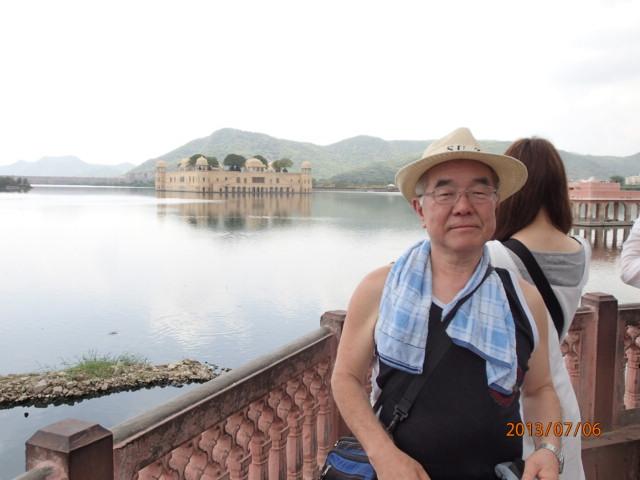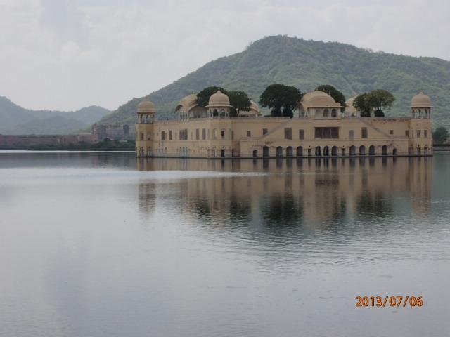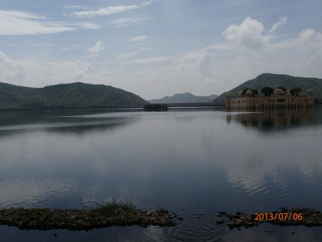山上の城から下り降りる道路は先刻登って来たの旧市街とは全く別の道路で、新たに観光客用に建設されたものと思われる。道路も上り下りと一方通行になっているのかも知れない。平地に降り、暫らく進むと大きな湖の前に出る。この湖が山上の宮殿から見えた湖と同じかどうかは分からないが、場所的には麓の辺りだ。バスから降り、湖畔を少し歩く。かなり大きな湖だ。水源にもなっているのだろう。湖上には西洋風の建物が浮かんでいて、ここは「水の宮殿」と呼ばれている。マハラジャの宮殿だ。