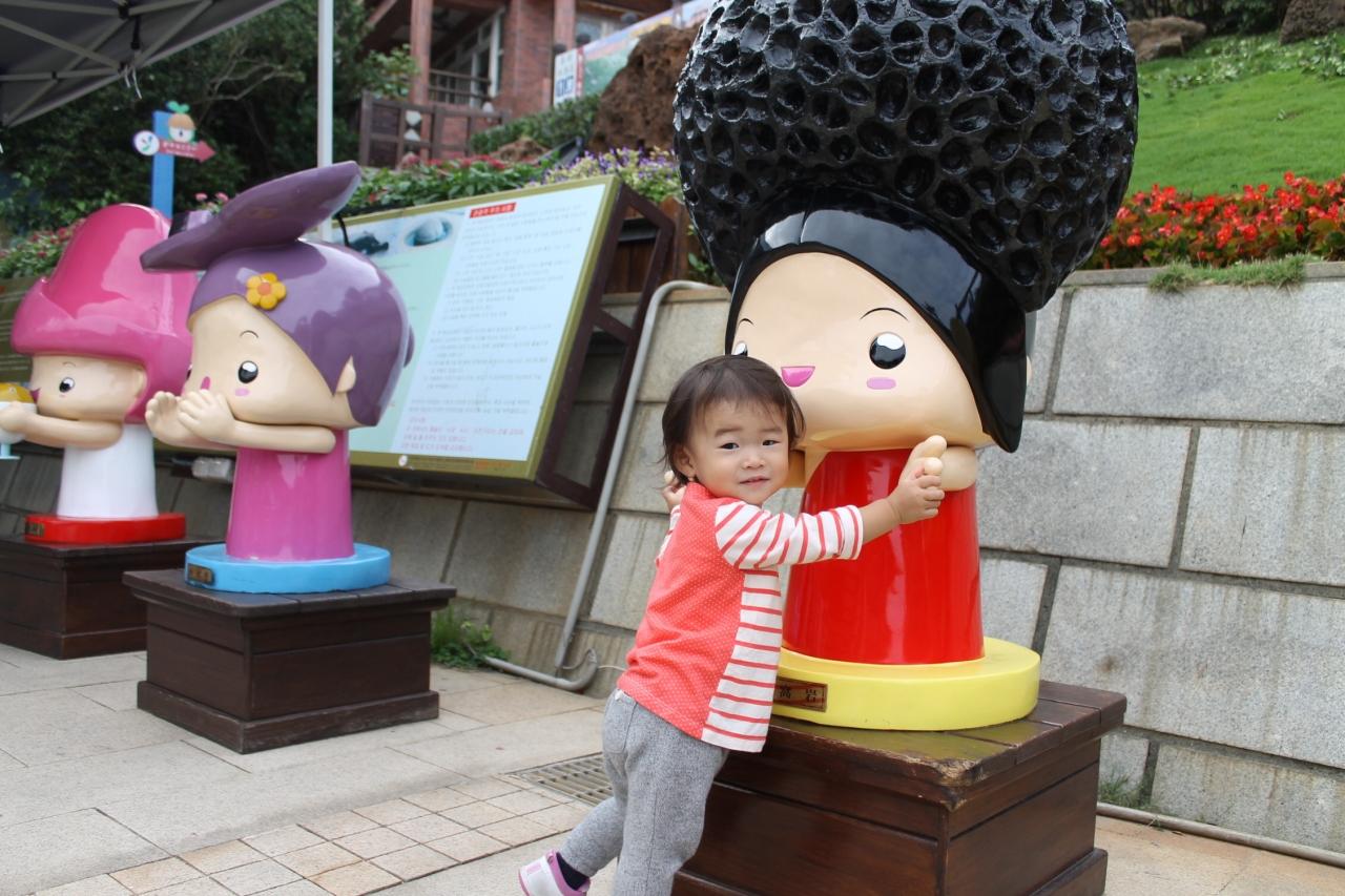 凹んでぶーたれる父と母を横目に、メイメイはゆるキャラと戯れる。 -