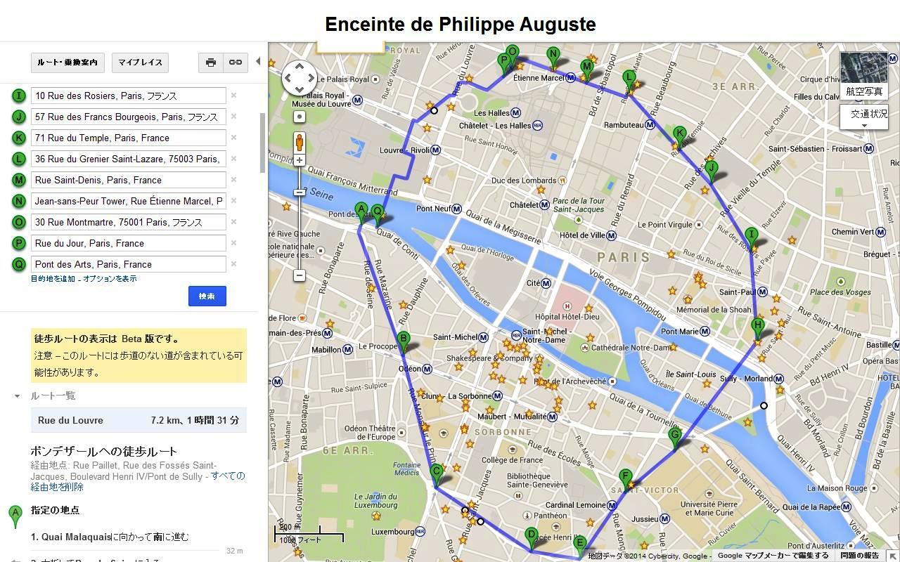 * フィリップ・オーギュスト城壁跡散歩のあしあと @Google Maps