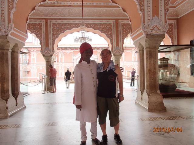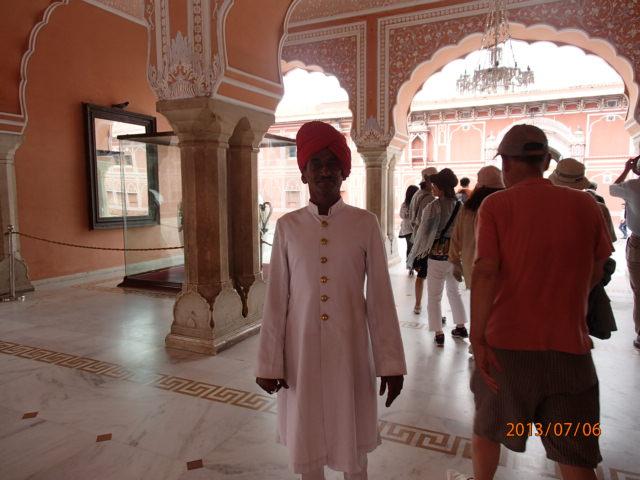 30分程宮殿内を散策するが、写真撮影禁止の場所が多く、イギリスとの関係で、英国から贈られた宝物、献上品、宝玉などを写真に収めることも出来なかった。先刻アンベール城内を充分見て来たので、まあ、良いとするか。代わりにそこかしこに立哨している正装したした衛兵が目を引き、これなどは、どこから見てもインド風というよりかは、イギリス植民地風のいでたち、と言っても良い程だった。